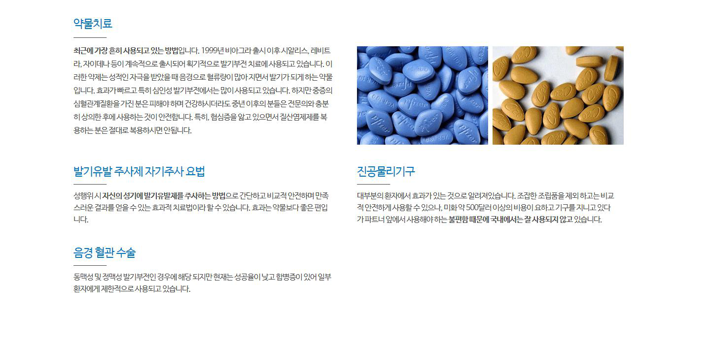 중년 남성들의 가장 큰 고민으로 문제가 신체적인 경우 음경에 연결된 혈관이 좁아져 충분한 혈액이 음경을 채우지 못해 발생하는 경우가 많지만,